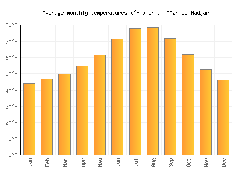 The bar chart below shows the average monthly peak daytime temperatures at ’Aïn el Hadjar