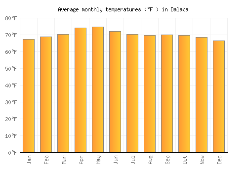 The bar chart below shows the average monthly peak daytime temperatures at Dalaba