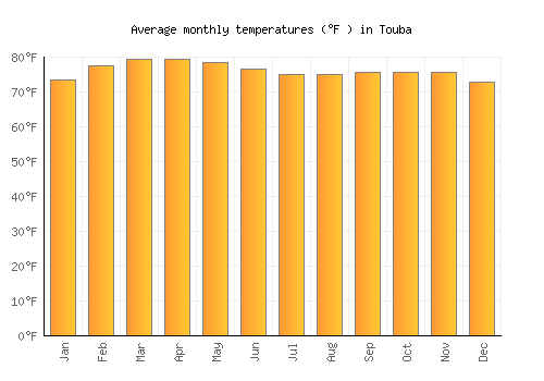 Average annual rainfall in Touba: 1399.4mm (550.9 inches)