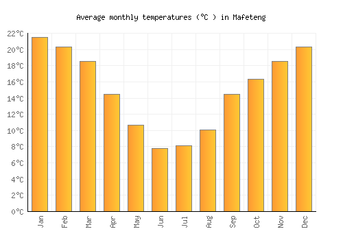 The bar chart below shows the average monthly peak daytime temperatures at Mafeteng