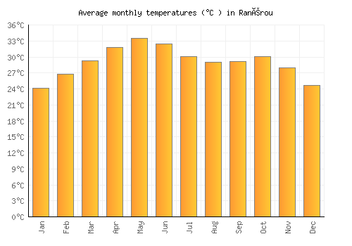 The bar chart below shows the average monthly peak daytime temperatures at Ranérou