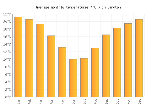 The bar chart below shows the average monthly peak daytime temperatures at Sandton