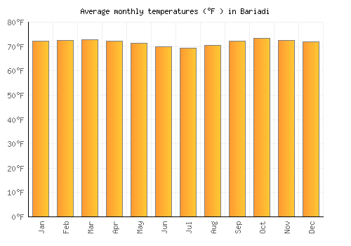 | Max °F | 72.3 | 72.5 | 72.9 | 72.1 | 71.4 | 69.8 | 69.3 | 70.5 | 72.3 | 73.4 | 72.5 | 72 |