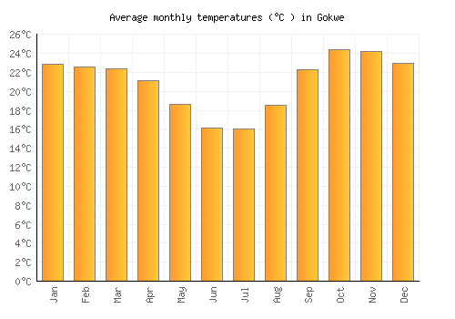 The bar chart below shows the average monthly peak daytime temperatures at Gokwe