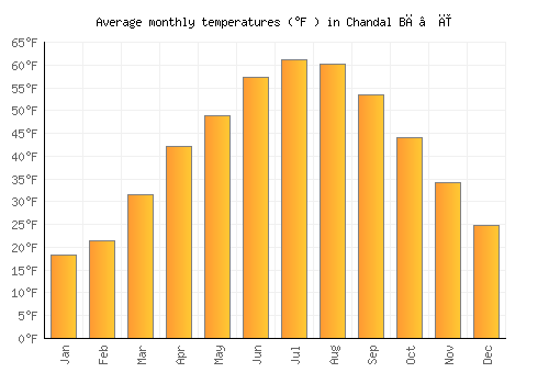 The bar chart below shows the average monthly peak daytime temperatures at Chandal Bā’ī