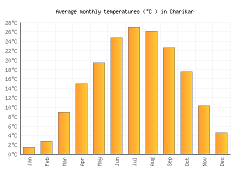 Average annual rainfall in Charikar: 543.433mm (214 inches)