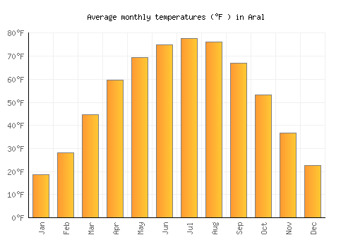 Average annual rainfall in Aral: 171.333mm (67.5 inches)