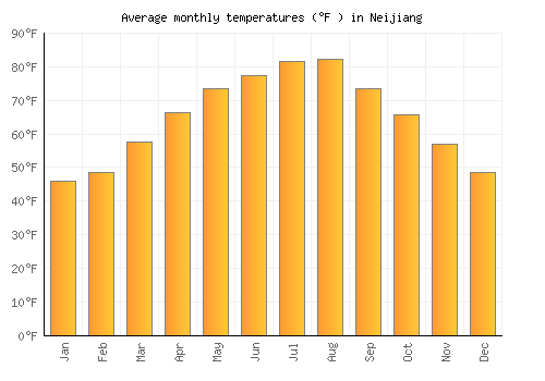 The bar chart below shows the average monthly peak daytime temperatures at Neijiang