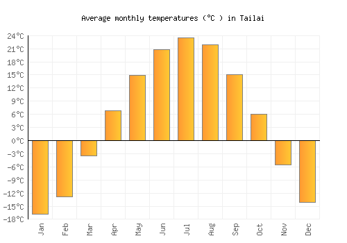 The bar chart below shows the average monthly peak daytime temperatures at Tailai
