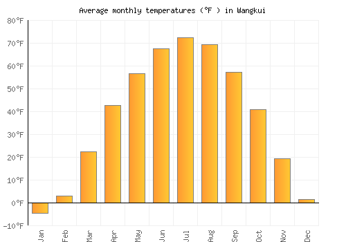 | Max °F | -4.5 | 3 | 22.5 | 42.6 | 56.8 | 67.6 | 72.5 | 69.3 | 57.2 | 40.8 | 19.4 | 1.6 |
