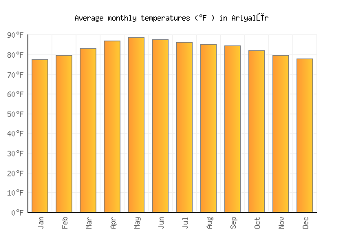 The bar chart below shows the average monthly peak daytime temperatures at Ariyalūr