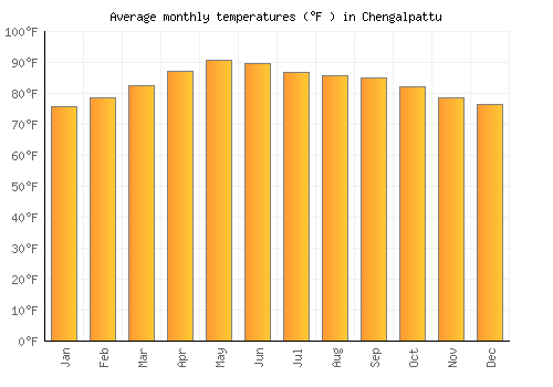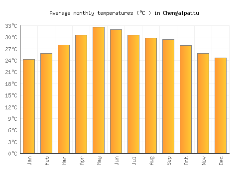 The bar chart below shows the average monthly peak daytime temperatures at Chengalpattu