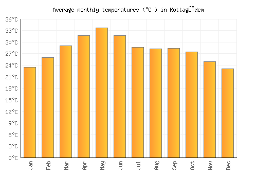 The bar chart below shows the average monthly peak daytime temperatures at Kottagūdem