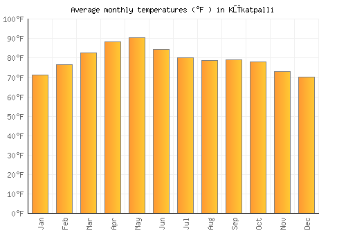 Average annual rainfall in Kūkatpalli: 914.534mm (360.1 inches)