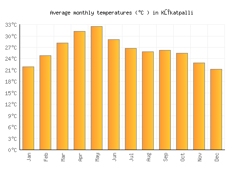 The bar chart below shows the average monthly peak daytime temperatures at Kūkatpalli