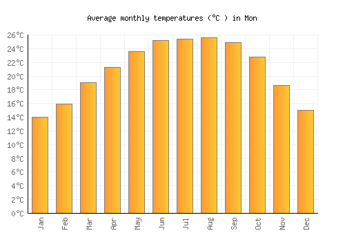 The bar chart below shows the average monthly peak daytime temperatures at Mon