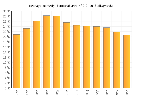 The bar chart below shows the average monthly peak daytime temperatures at Sidlaghatta
