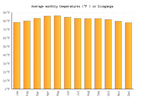 The bar chart below shows the average monthly peak daytime temperatures at Sivaganga