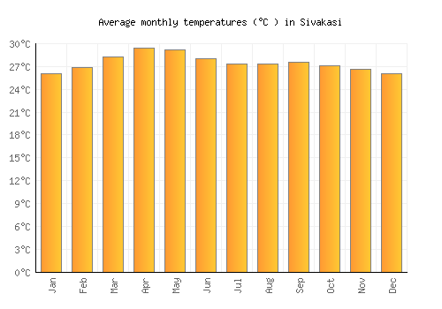 The bar chart below shows the average monthly peak daytime temperatures at Sivakasi