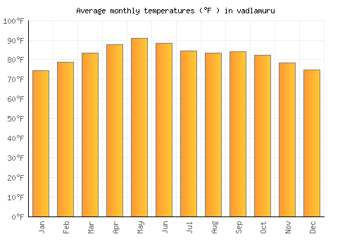 The bar chart below shows the average monthly peak daytime temperatures at vadlamuru
