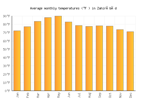 The bar chart below shows the average monthly peak daytime temperatures at Zahirābād