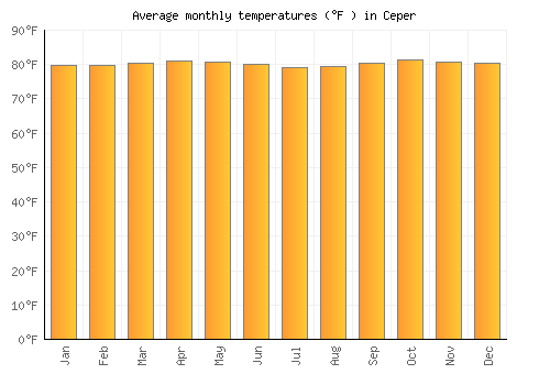 Average annual rainfall in Ceper: 2187.6mm (861.3 inches)