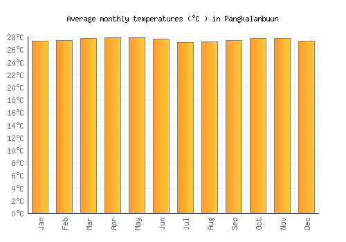 The bar chart below shows the average monthly peak daytime temperatures at Pangkalanbuun