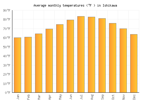 The bar chart below shows the average monthly peak daytime temperatures at Ishikawa