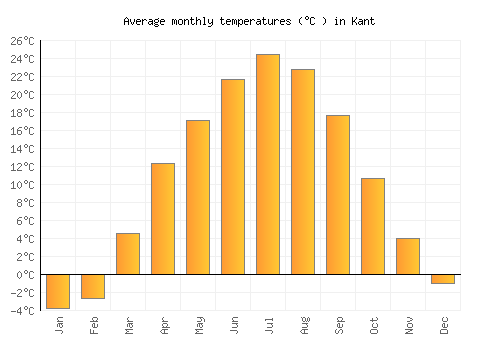 Average annual rainfall in Kant: 542.134mm (213.4 inches)