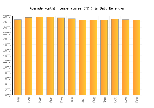 The bar chart below shows the average monthly peak daytime temperatures at Batu Berendam