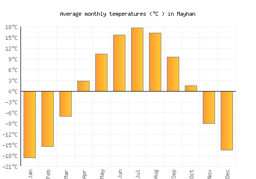 | °C | -11.9 | -8.1 | 0.5 | 10.2 | 18 | 22.6 | 24 | 22.4 | 16.6 | 8.8 | -2.3 | -10.1 |