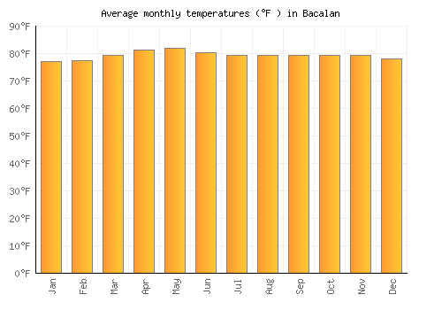 Average annual rainfall in Bacalan: 3334.766mm (1312.9 inches)