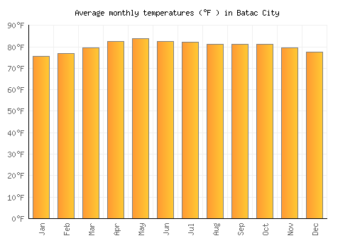 The bar chart below shows the average monthly peak daytime temperatures at Batac City