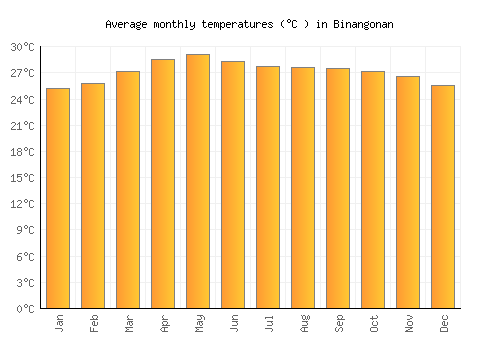 The bar chart below shows the average monthly peak daytime temperatures at Binangonan