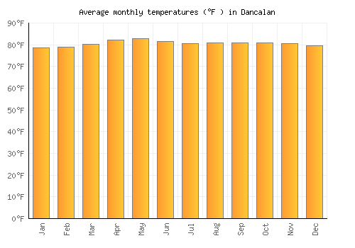 Average annual rainfall in Dancalan: 2319.167mm (913.1 inches)