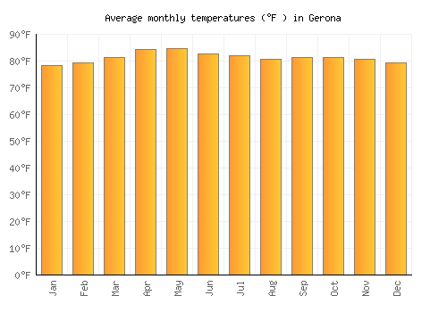 The bar chart below shows the average monthly peak daytime temperatures at Gerona