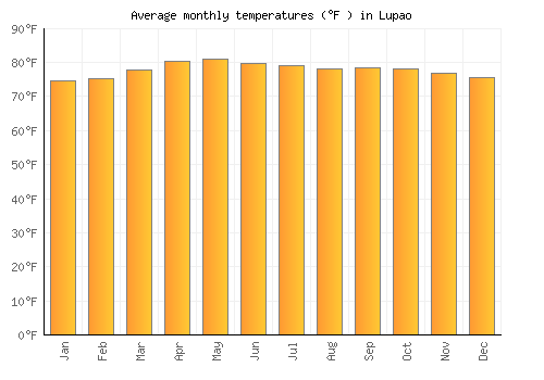| Max °F | 74.5 | 75.4 | 77.7 | 80.4 | 81 | 79.7 | 79 | 78.1 | 78.4 | 78.1 | 77 | 75.6 |