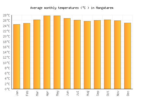 The bar chart below shows the average monthly peak daytime temperatures at Mangatarem