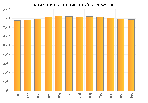 | Max °F | 77.7 | 78.1 | 79.3 | 81.5 | 82.6 | 82 | 81.3 | 81.9 | 81.3 | 80.8 | 79.7 | 78.8 |