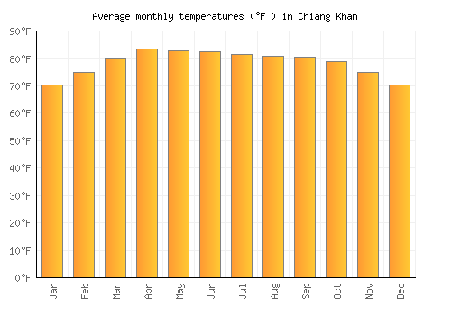 The bar chart below shows the average monthly peak daytime temperatures at Chiang Khan