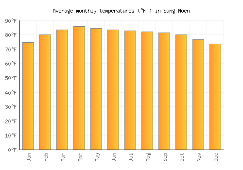 The bar chart below shows the average monthly peak daytime temperatures at Sung Noen
