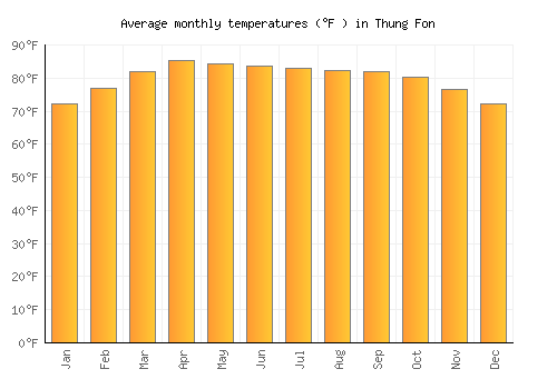 The bar chart below shows the average monthly peak daytime temperatures at Thung Fon