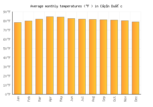| Max °F | 78.3 | 79.9 | 82 | 84.6 | 84.2 | 82.6 | 81.9 | 81.7 | 81.3 | 81 | 80.2 | 78.8 |