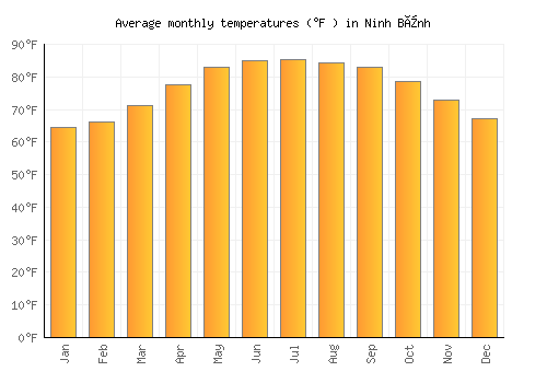 The bar chart below shows the average monthly peak daytime temperatures at Ninh Bình