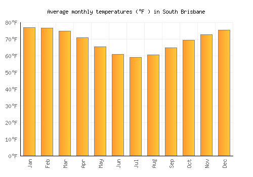 The bar chart below shows the average monthly peak daytime temperatures at South Brisbane