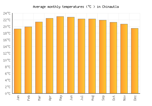 The bar chart below shows the average monthly peak daytime temperatures at Chinautla