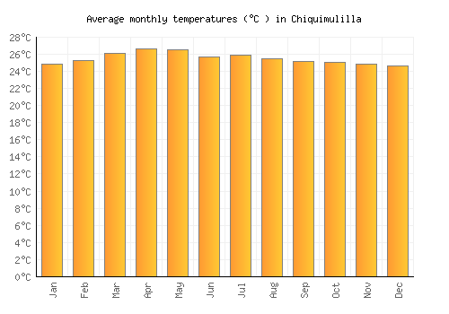 The bar chart below shows the average monthly peak daytime temperatures at Chiquimulilla