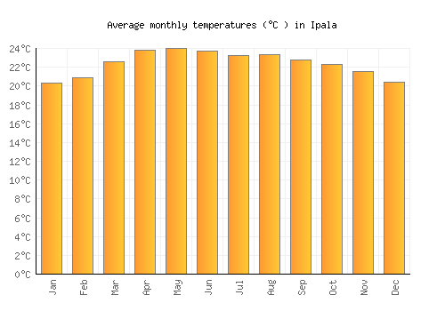 The bar chart below shows the average monthly peak daytime temperatures at Ipala