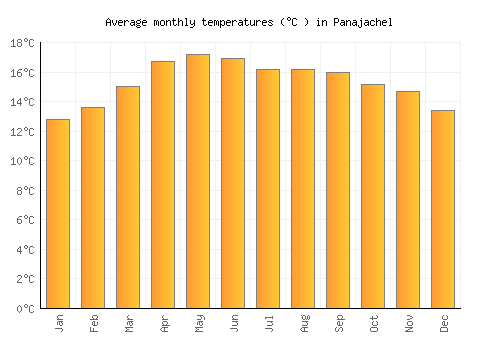 The bar chart below shows the average monthly peak daytime temperatures at Panajachel