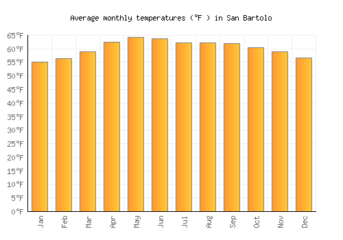 The bar chart below shows the average monthly peak daytime temperatures at San Bartolo